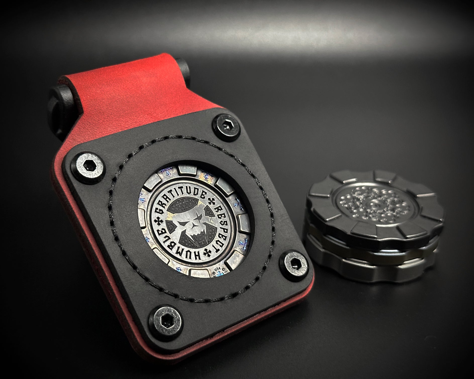 Our Tombstone Leather Chip Vaults are designed to securely protect HiTex Gear chips, ranging from Standard chips (5mm), to Medium Thick (7mm), and up to Thick chips (9mm). Heavy duty full-grain leather throughout, with dual-sided viewing ports. Finished and secured with black stainless hex screw hardware.